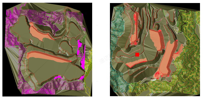 圖2-采用DIMINE“填挖方量”測量工具對排土場作業(yè)量進行繪制