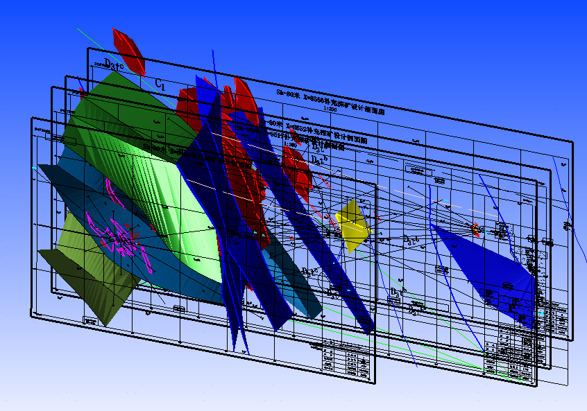 通過學(xué)習DIMINE,成功攻克了礦區(qū)原始圖件平剖面標高不對應(yīng)的技術(shù)難題。針對我礦礦體南北延伸達3000m、巷道工程坡度變化大的復(fù)雜條件,創(chuàng)新采用巷道控制點連線→線附高程賦值的建模方法,精準還原了礦體界線的真實空間賦存狀態(tài)?;诖私⒌娜V區(qū)三維礦體模型與實時更新的鉆孔數(shù)據(jù)庫,實現(xiàn)了三大技術(shù)突破:地質(zhì)資料動態(tài)綜合處理、數(shù)字化自動成圖與三維可視化仿真、地質(zhì)圈定-采礦設(shè)計全流程線上協(xié)同運行。